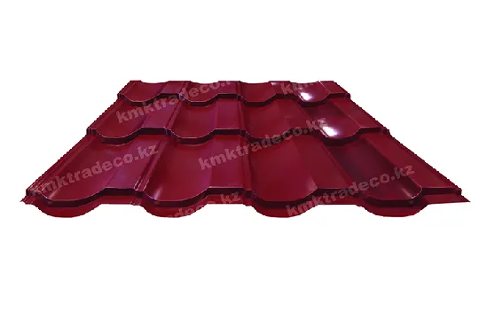 Металлочерепица Панорама – один из самых популярных видов данного кровельного материала. Металлическая кровля имеет максимальное сходство с натуральной черепицей. Листы изготовлены из тонколистовой стали толщиной 0.45 мм с полимерным защитным слоем. Цвет – RAL 3011 Коричнево-красный. Высота профиля – 25+/-1 мм.
